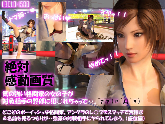 <3DCGによる動画です。動画1本+写真集のオマケ付き:全31ページ>腕に自信のある格闘家の彼女は、アングラの賭博格闘マッチに腕試しに出場。このゲームは、女性格闘家が勝利すれば賞金1000万円という破格のファイトマネーが得られるのですが、対戦相手の男性は相手の女性を力でねじ伏せてレ○プしてOKという最低最悪のルールなのでした。意気揚々と参戦した彼女でしたが、初戦でヤられてしまいます。